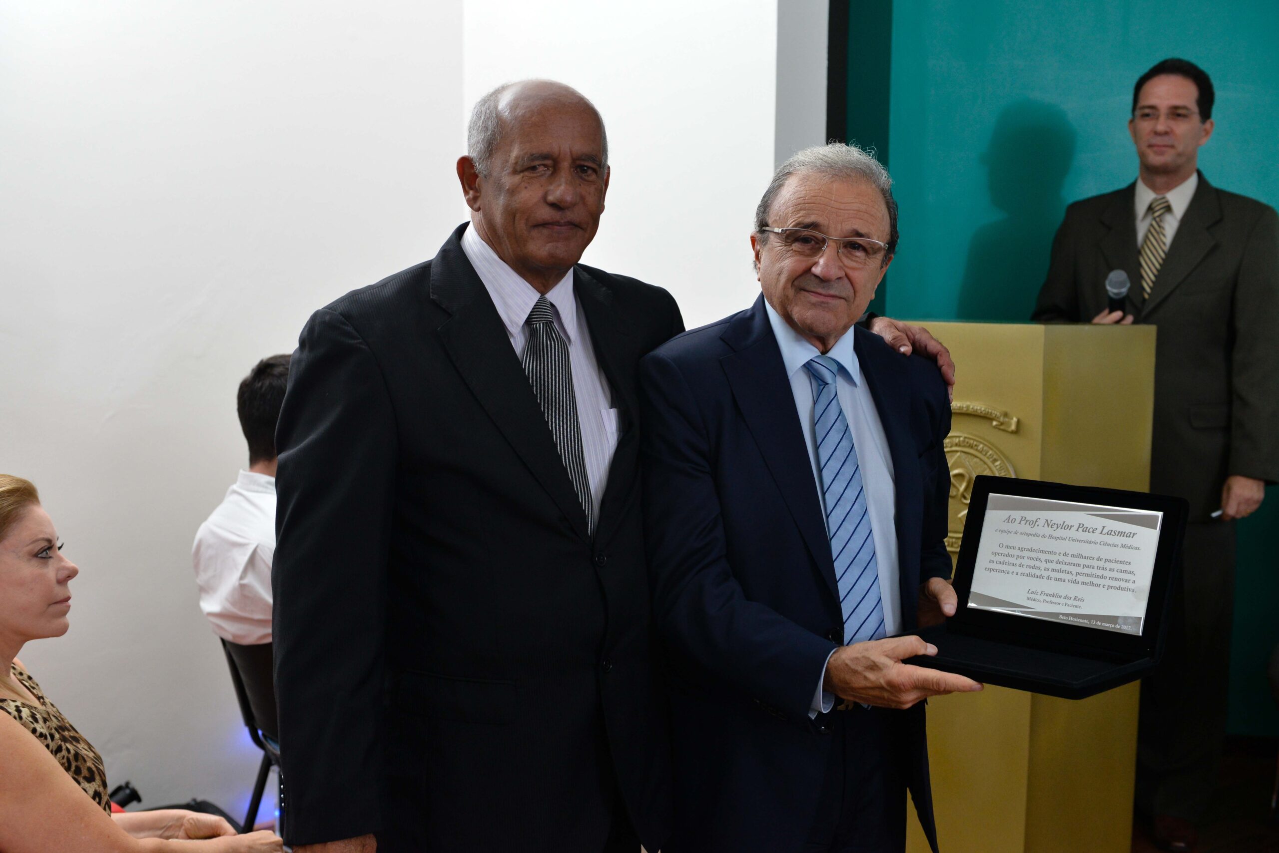 Dentre os mais de duzentos presentes que lotaram a celebração, estiveram presentes compondo a mesa de honra, o Secretário de Estado de Planejamento e Gestão de Minas Gerais, Dr. Helvécio Miranda Magalhães Júnior, representando o governador de Minas Gerais, Sr. Fernando Pimentel; o Prefeito de Belo Horizonte, Sr. Alexandre Kalil; o Secretário Municipal de Saúde, Dr. Jackson Machado Pinto; o Presidente da Fundação Educacional Lucas Machado – FELUMA, Dr. Wagner Eduardo Ferreira; O diretor do Hospital Universitário Ciências Médicas-MG, Dr. Antônio Carlos de Barros Martins e o grande benfeitor e doador da obra da Ortopedia, Dr. Ricardo Valadares Gontijo.