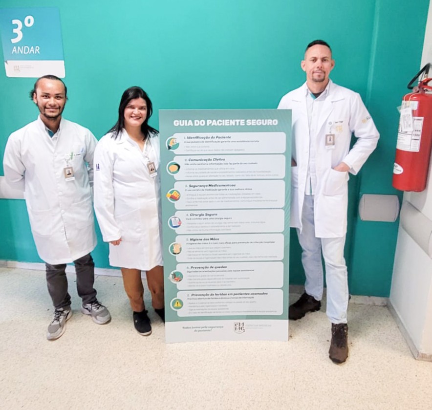 O diretor do Hospital Universitário Ciências Médicas de Minas Gerais, Dr. Glauco Messias, junto com o Dr. Benedito Scaranci, Coordenador da Residência Médica Multiprofissional e Especialização Hospitalar, alguns preceptores e funcionários, receberam oficialmente os novos residentes.